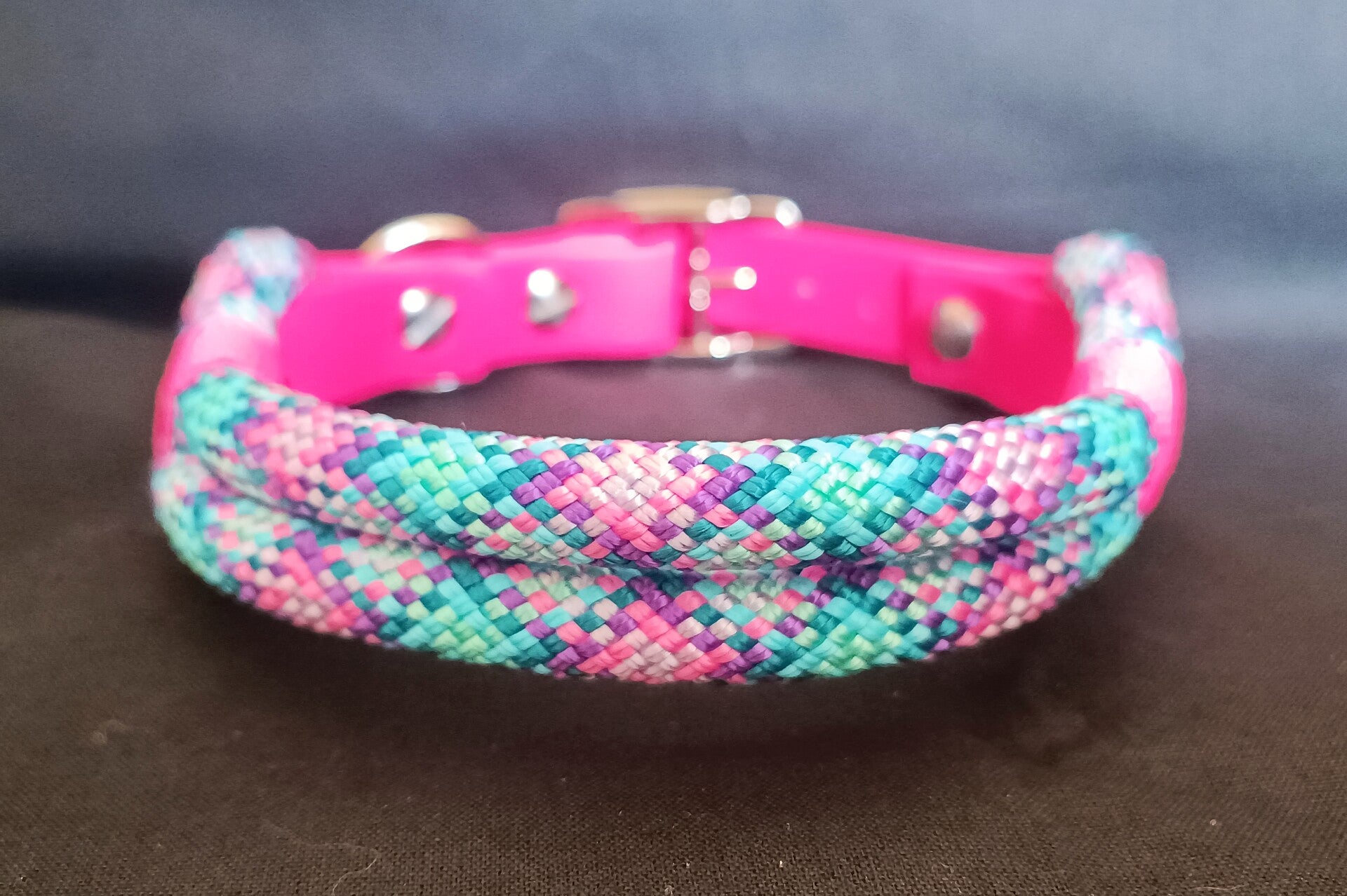 Collier classique en paracorde avec adaptateur biothane, fils de finition assortie au biothane et bouclerie en "argent".