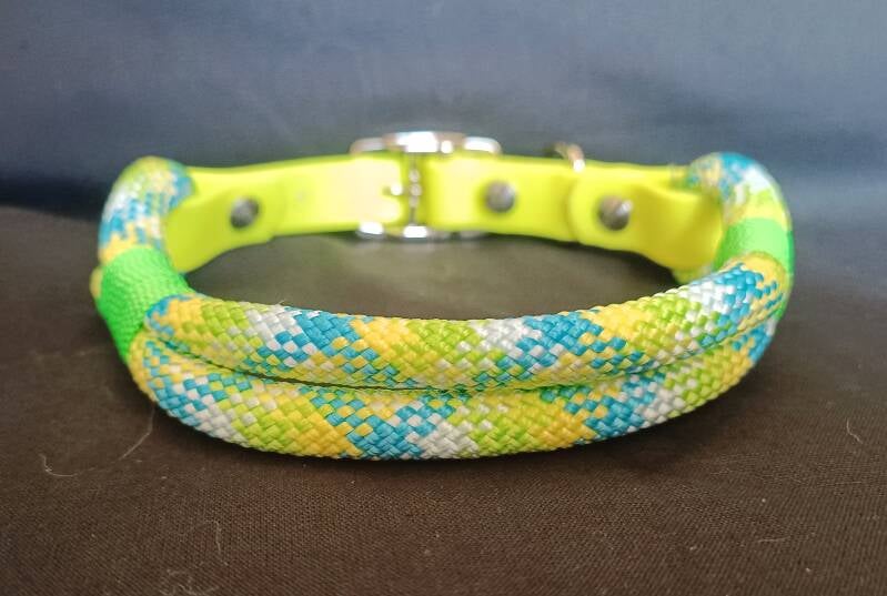 Laisse "Skylime" avec fil de finition vert néon et bouclerie "argent".