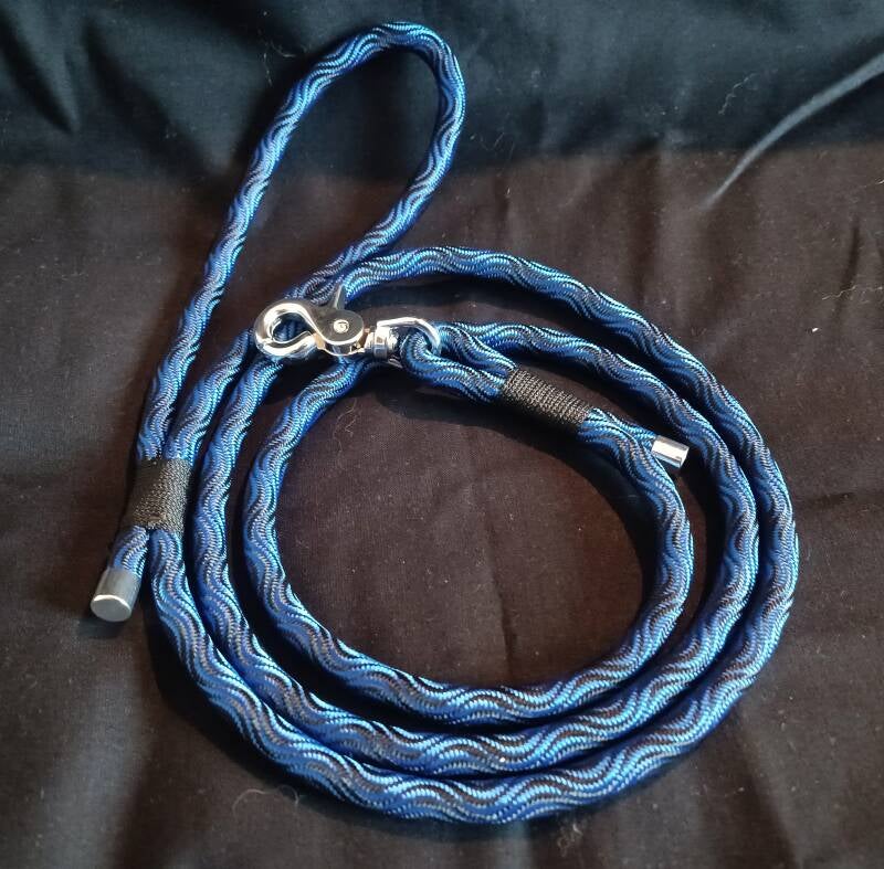 Laisse "Smooth Wave Cord" bleu et noir avec fil de finition noir et bouclerie "argent".